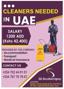 SSL Recruitment Agency is recruiting Cleaners to work in the United Arab Emirates.