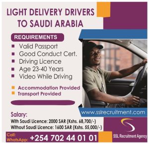 We are recruiting LIGHT DELIVERY DRIVERS to work in Saudi Arabia.