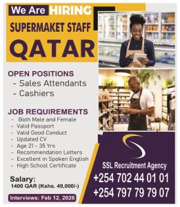 📩 Apply now through SSL Recruitment Agency - +254 702 44 01 01 / +254 797 79 79 07.